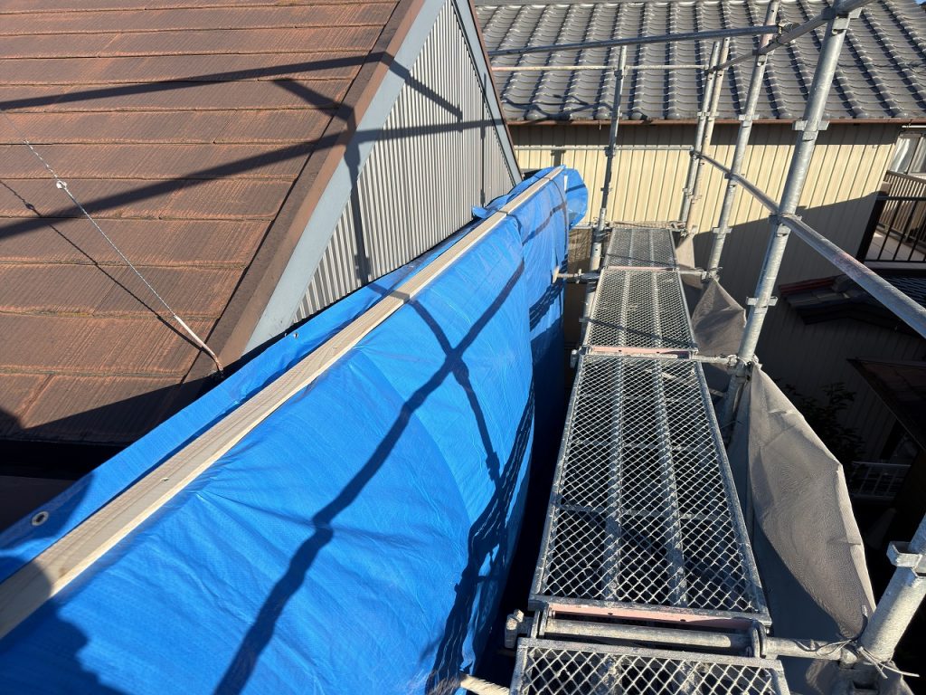 破風・鼻隠しを板金で巻き外部工事が完了しました。