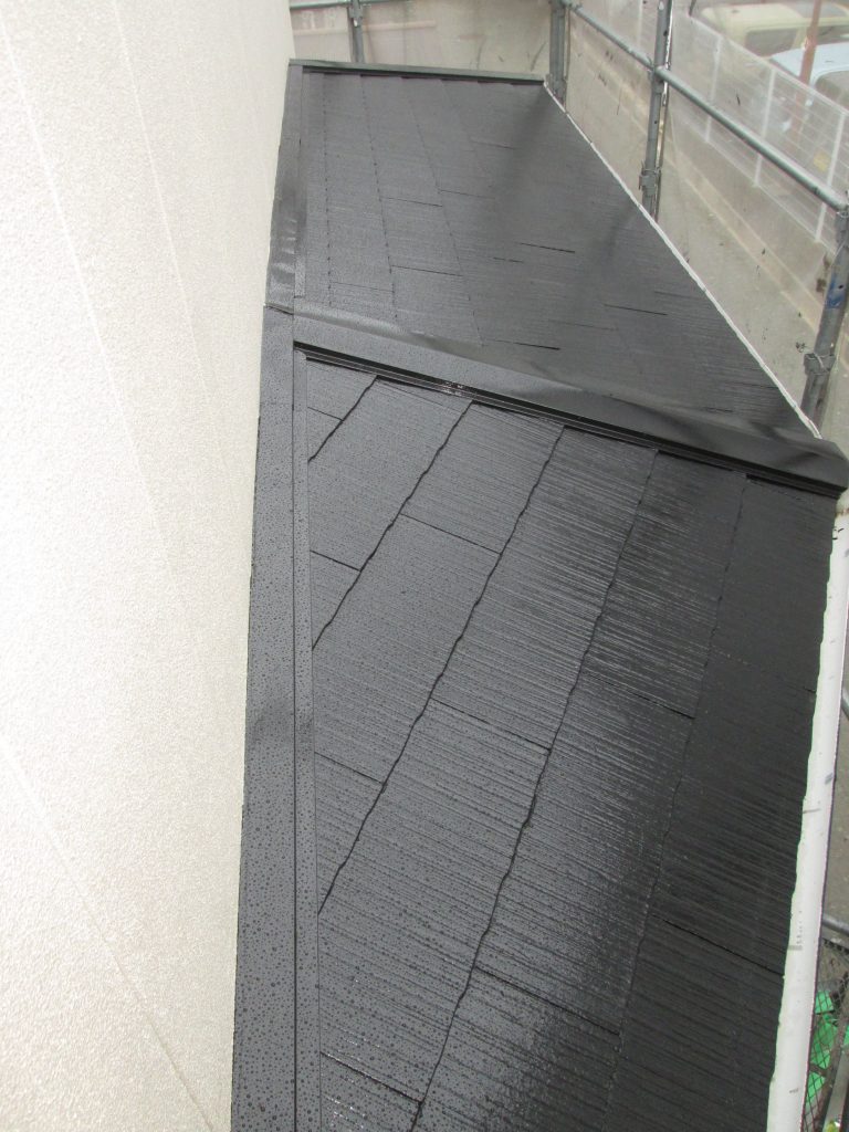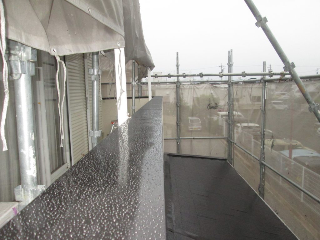 下屋とベランダ笠木はブラック色で仕上げています。