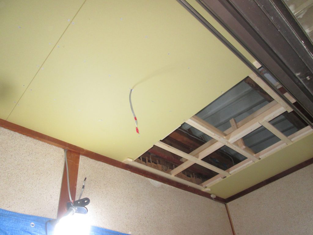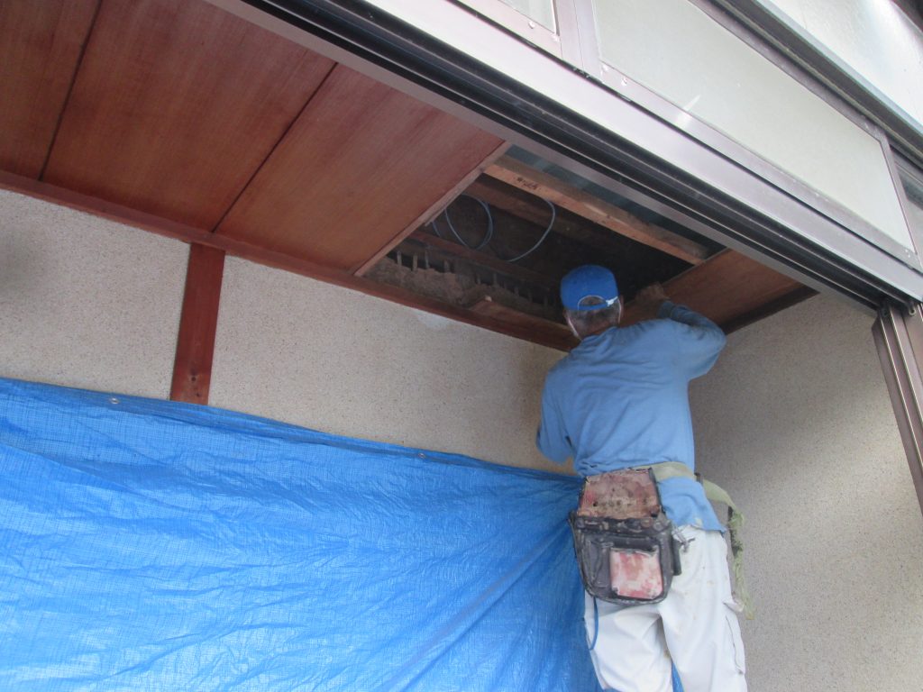 樋下の天井が傷んでしまったので張り替えます。既設を解体して天井を組み直します。