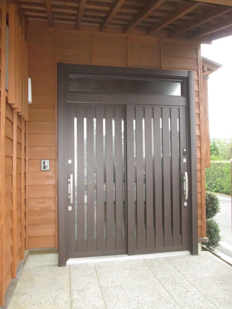 オプションの大型ハンドルで開閉が楽に行えます。重厚感があり防犯性能もアップしました。(工事範囲:玄関サッシ取替他)