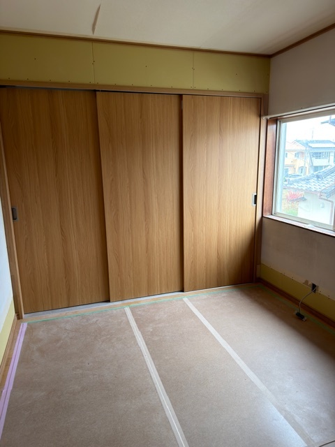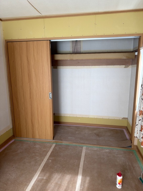 2階洋室の造作が完了しました。部屋の一部をクロークに造り替えています。