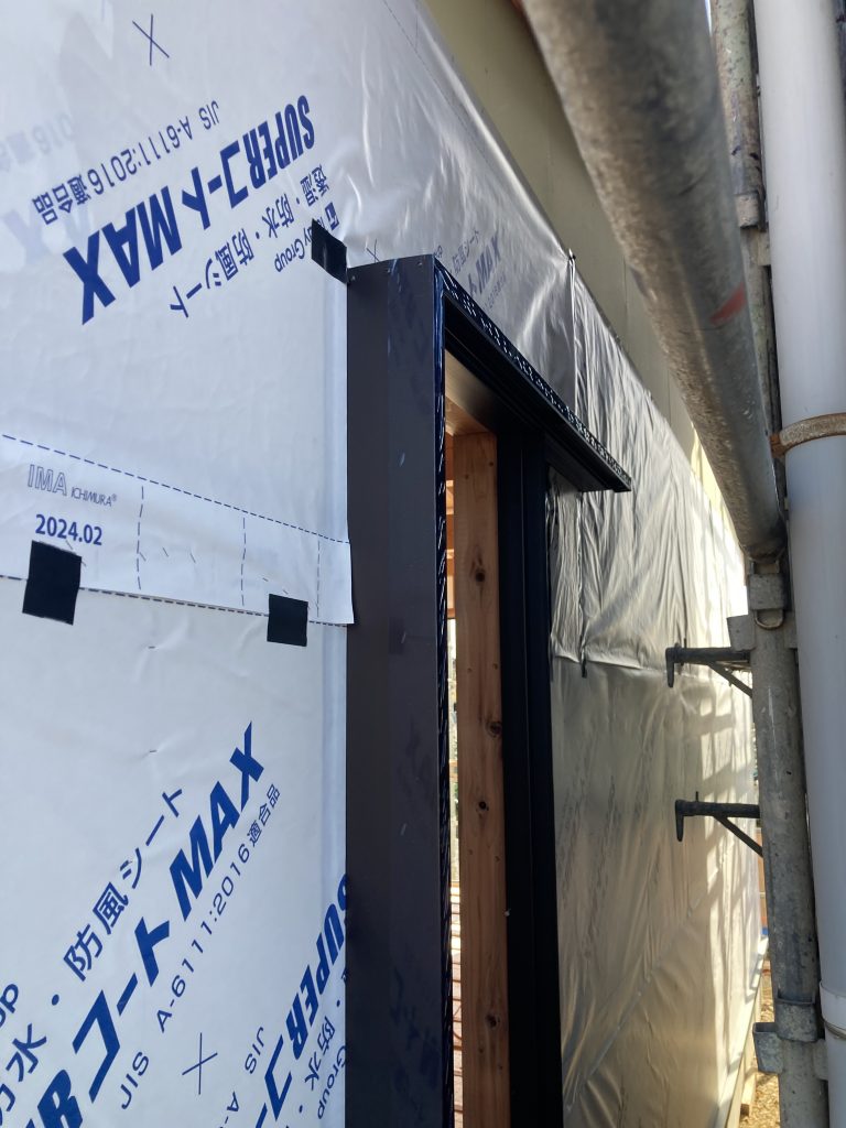 ガルバリュウムの外壁を張る前に プラスターボードの上にタイベックシート(防水紙) を張り終えました。