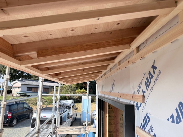 軒天の下地組が完了しています。