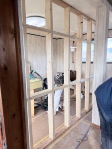 2階の洋室を二部屋に間仕切ります。下地組作業状況です。