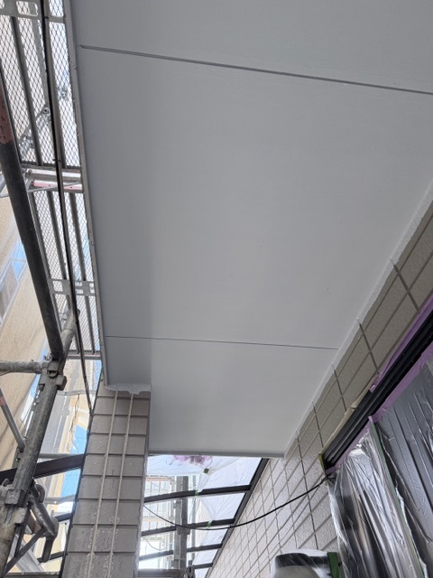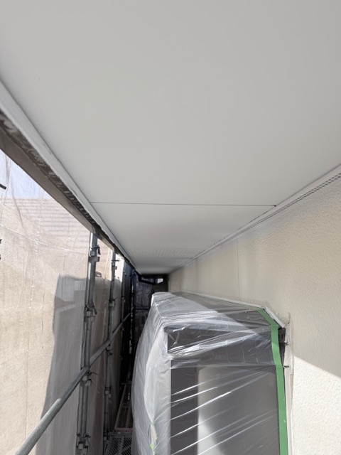 軒天の上塗りを行いました。汚れやくすみが消え、明るく感じられます。