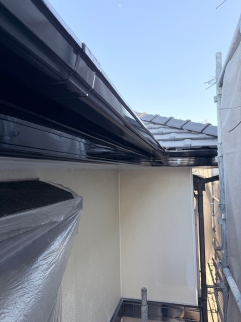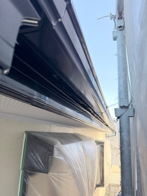 鼻隠し板と樋をブラック色で仕上げました。艶が綺麗に出ています。