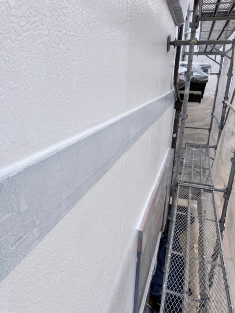 外壁のシーラー塗装(下塗り)が完了しました。上塗り塗料の密着性をよくします。