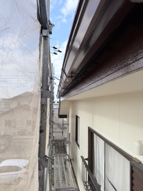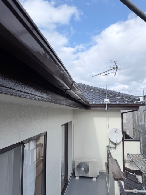 樋と鼻隠し板も同色のブラウンで仕上げ、統一感を持たせています。