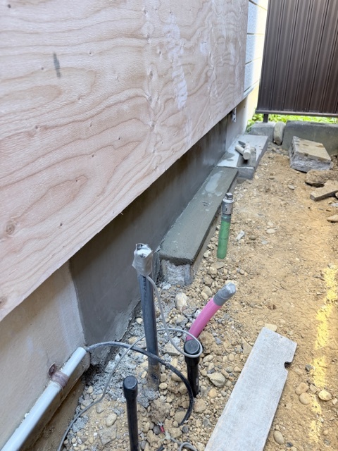 中庭部分を浴室にする為、洗面所とともに土間コンクリートを打設しました。