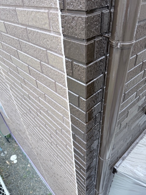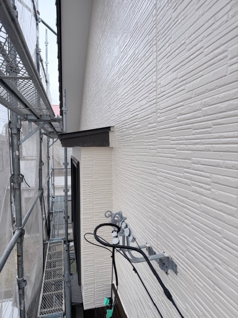 外壁の上塗りを行いました。ワイドウォールSiを2回塗りで仕上げます。