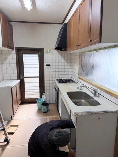 キッチンのリフォームを行います。既設のキッチンを解体しています。