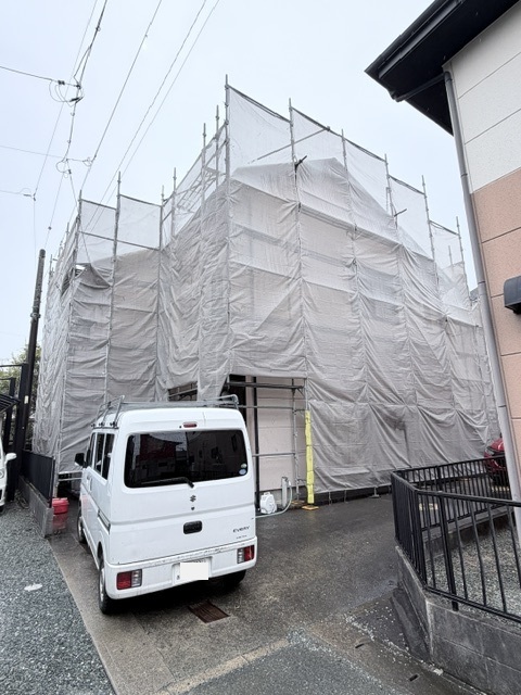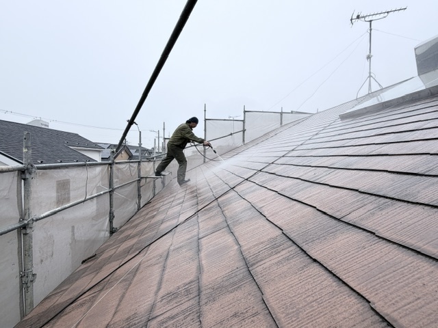 塗替え工事がスタートしています。水不足が続いていますが、しっかりと汚れを洗い流して行きます。