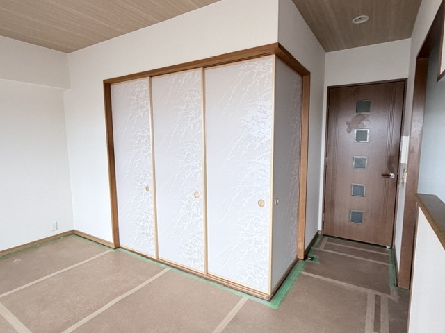 和室の襖を入替えました。敷居滑りを交換し動きがスムーズになりました。