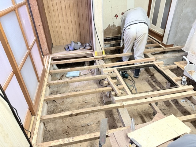 キッチンの床がベコベコして来たのでリフォームします。既設を撤去して行きます。