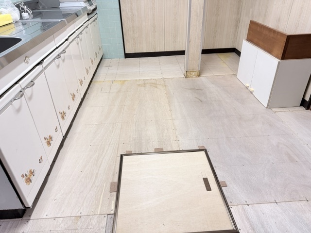 クッションフロアー用の耐水合板を張り、2重張りの丈夫な床になりました。
