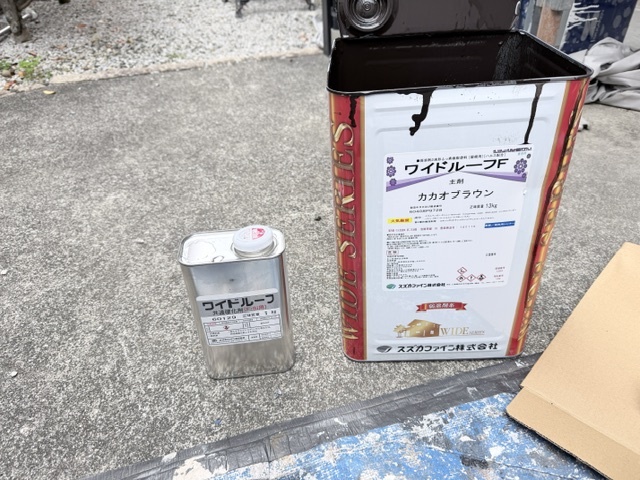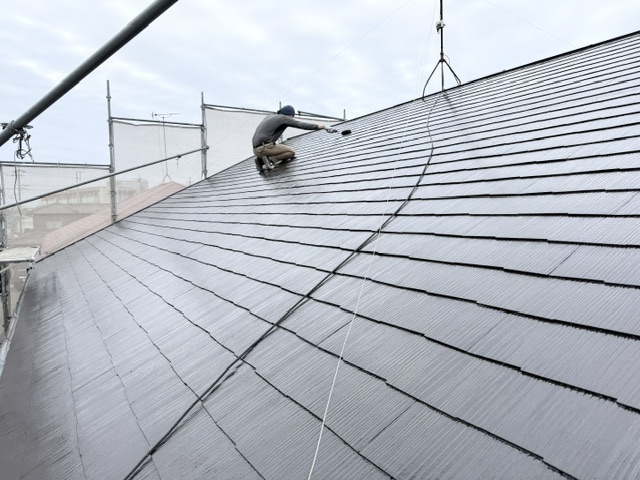 屋根の上塗り作業状況です。2回塗りで仕上げます。