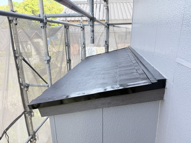 下屋の仕上がり状況です。ブラック色で輝いています。