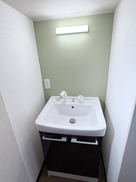 2階トイレと洗面です。新しく綺麗に生まれ変わりました。連休明けから外装のリフォームが始まります。