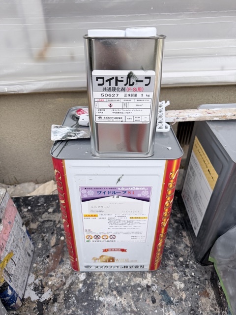屋根と外壁の上塗り塗料です。どちらも、アクリルシリコン樹脂系塗料になります。