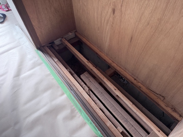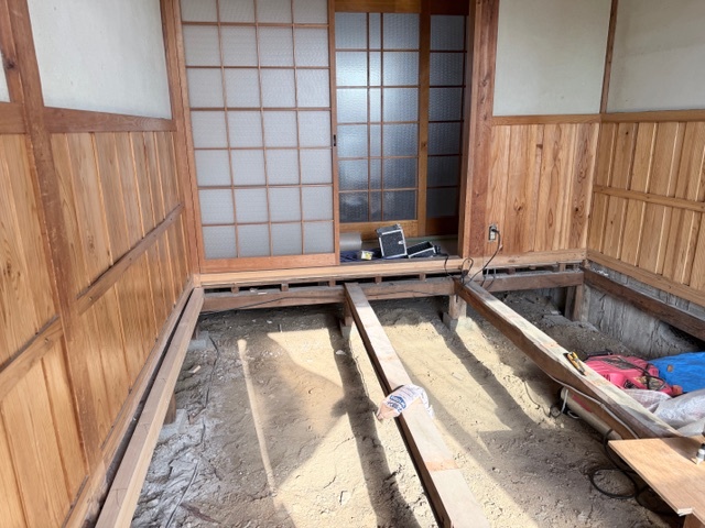 床組も進み根太の 間にスタロフォーム(断熱材)を入れて いきます。