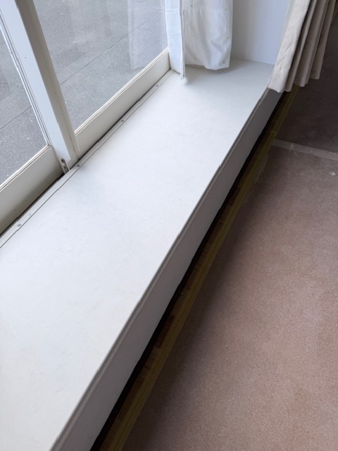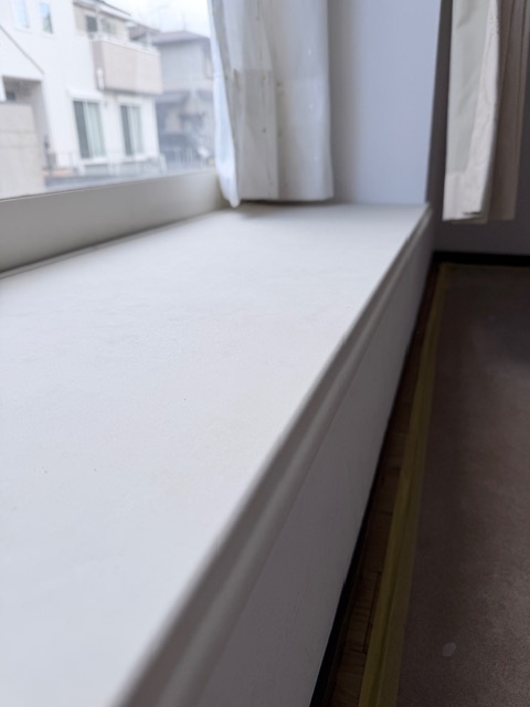 出窓の天板が傷んで来たので、ダイノックシートを貼りました。まるで新品の様な綺麗な仕上がりです。