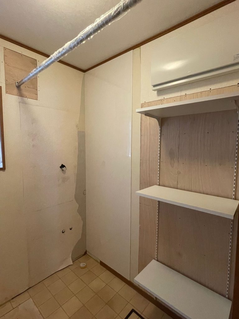 空きスペースに可動棚を設置し、どこでも荷物が置けるように棚を3段付けることができました。