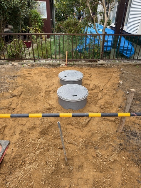 単独浄化槽から合併浄化槽に入れ替えます。地下水が凄かったですが何とか設置できました。